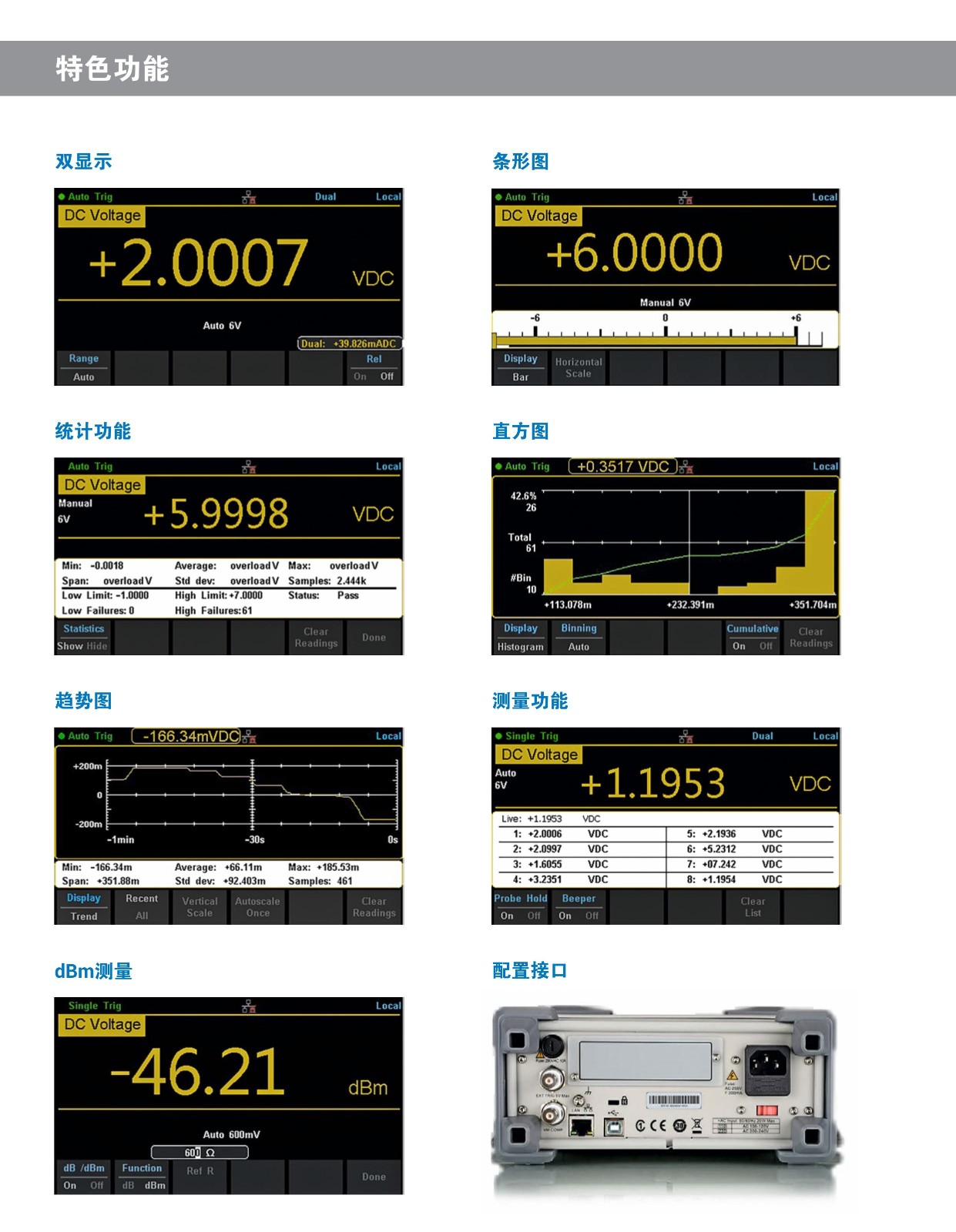 ● 最大值、最小值、平均值、標(biāo)準(zhǔn)差、相對(duì)測(cè)量、條形表,直方圖,趨勢(shì)圖,dB/dBm,限值等