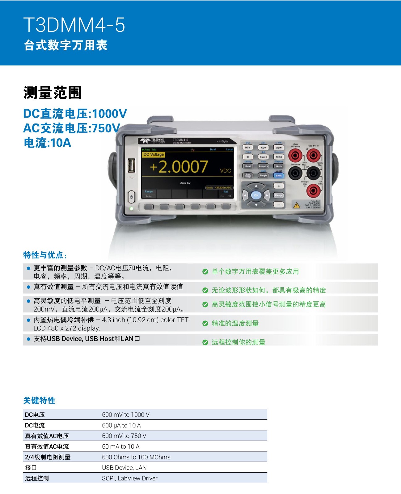 力科T3DMM4-5四位半臺(tái)式數(shù)字萬(wàn)用表1000V,10A