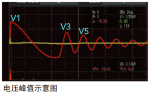 諧振波形中的第一個(gè)電壓峰值。當(dāng)電池芯正負(fù)極板之間的絕緣不良或是隔離膜不存在時(shí),在足夠的電場(chǎng)強(qiáng)度/電壓下會(huì)造成放電,會(huì)導(dǎo)致第一個(gè)電壓峰值比樣品的第一個(gè)電壓峰值低。