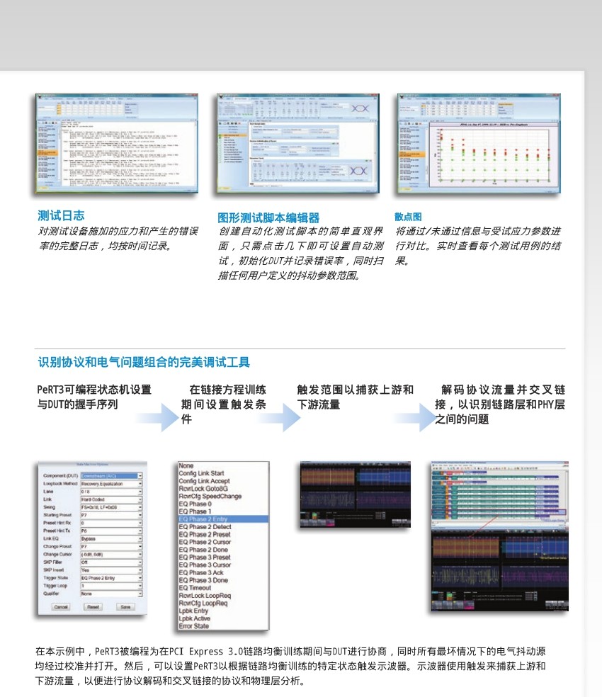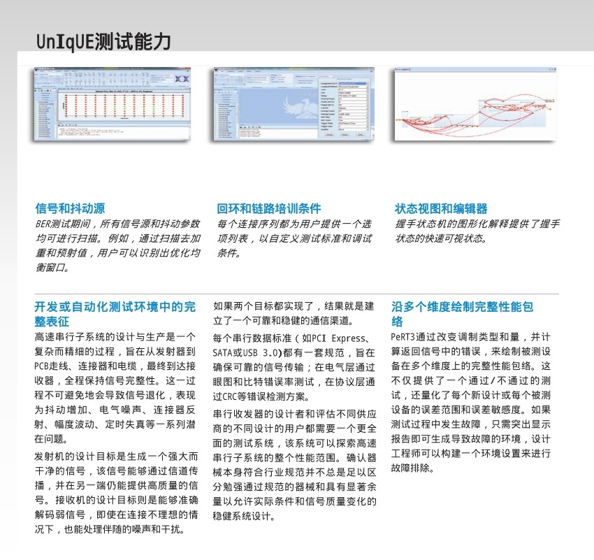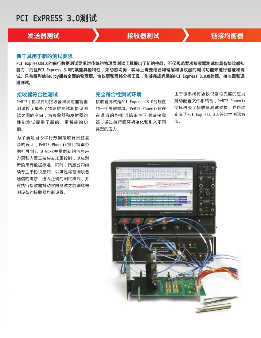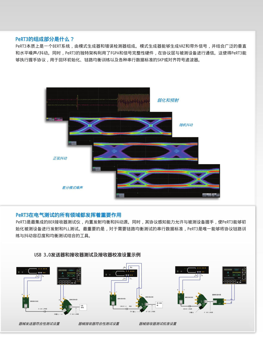 PeRT3 (具有協(xié)議使能功能的接收機(jī)和發(fā)射機(jī)容限測試儀)填補(bǔ)了物理層測試和協(xié)議層測試之間的空白,為接收機(jī)測試和發(fā)射機(jī)測試提供了更新穎的、更智能化的測試能力。該產(chǎn)品主要是針對(duì)于串行數(shù)據(jù)的收發(fā)系統(tǒng)以及其他高速串行信號(hào)的通信系統(tǒng)。力科的PeRT3不僅僅是一款新的儀器,更是代表了一類具有完整的新的概念的測試儀器。