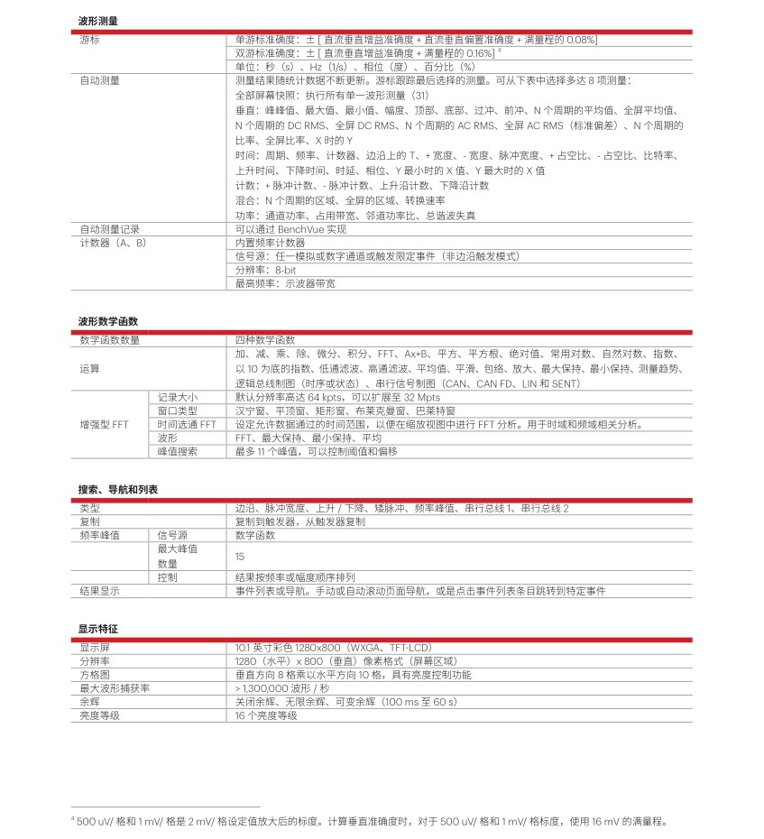 HD3 系列采用完全定制的核心器件,專門針對示波器測量進行了優(yōu)化。研發(fā)團隊投入大量精力設計出了 一款全新的 14-bit ADC、一款全新的 ASIC,還有其他配套元器件和一種全新的信號傳輸架構。由于是親 自設計的這些元器件,而不是使用現成的元器件,因此我們的硬件運行速度更快、效率更高,因為它們是專門針 對示波器設計的。 這種新架構還包括深存儲器,每個通道都配有專用的存儲芯片(100 Mpts)。這意味著通道之間不存在交織采樣。 即使您開啟了全部 4 個通道,也仍然可以在每個通道上獲得該示波器的最大存儲深度和最高采樣率。 我們采用的新型定制 ASIC(MegaZoom 5)使得 HD3 成為同類產品中唯一一款通過硬件實現區(qū)域觸發(fā)、串行解 碼和模板測試等功能的示波器。 最后,借助定制硬件,我們還能夠構建新的定制軟件,例如我們的故障獵人應用。您只需運行故障獵人,就能輕 松檢測信號中的各種毛刺或錯誤!
