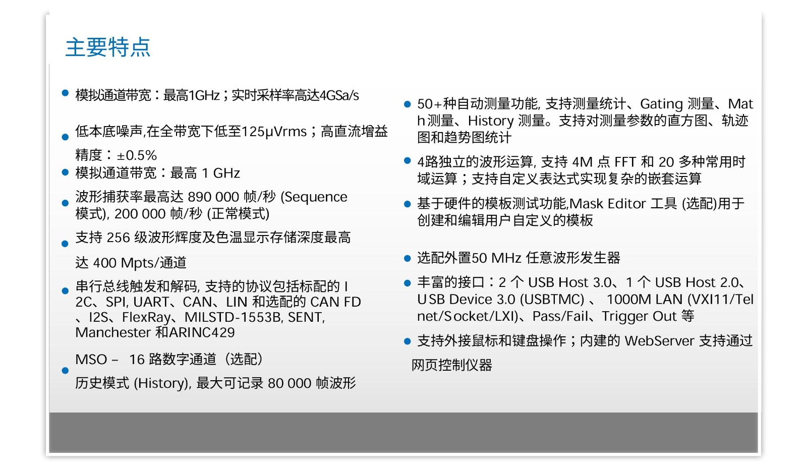 | 產(chǎn)品 | 帶寬 | 通道數(shù) | 最大存儲器深度 | 采樣率 | 適配探頭 |