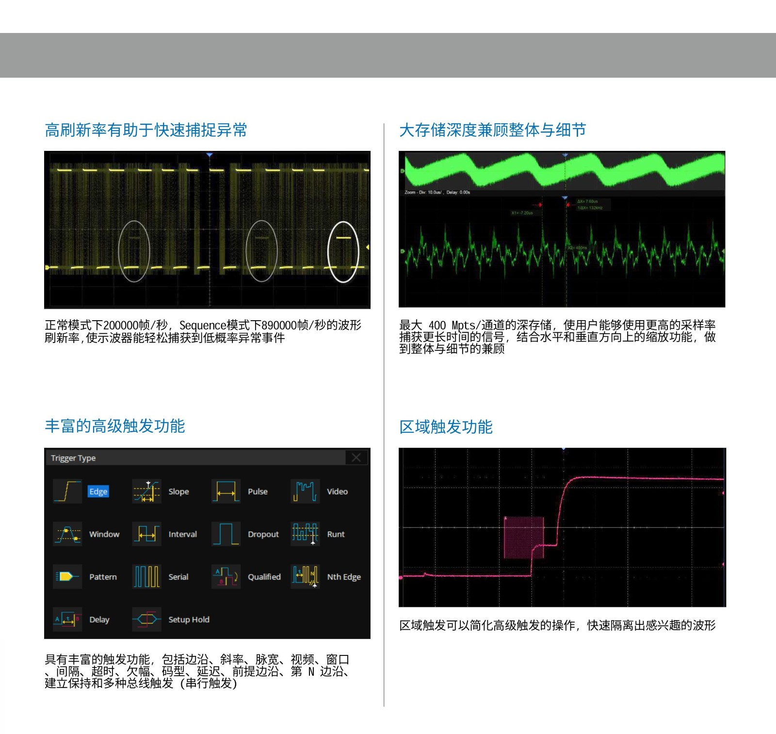 ◆ 存儲深度:400Mpts for CH1 and CH3,200Mpts forCH1 and CH2