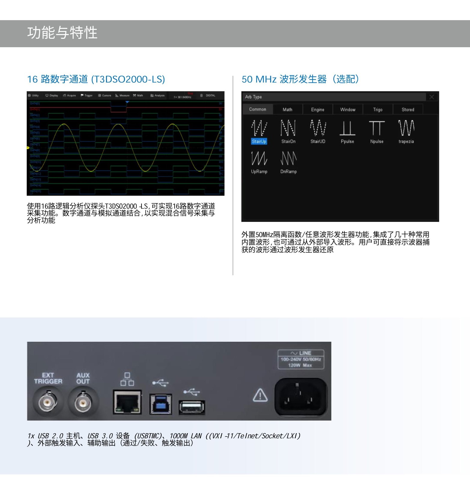 ■ 內(nèi)置 50 MHz 波形發(fā)生器軟件。需要選配 T3DSO-FGMOD硬件激活。