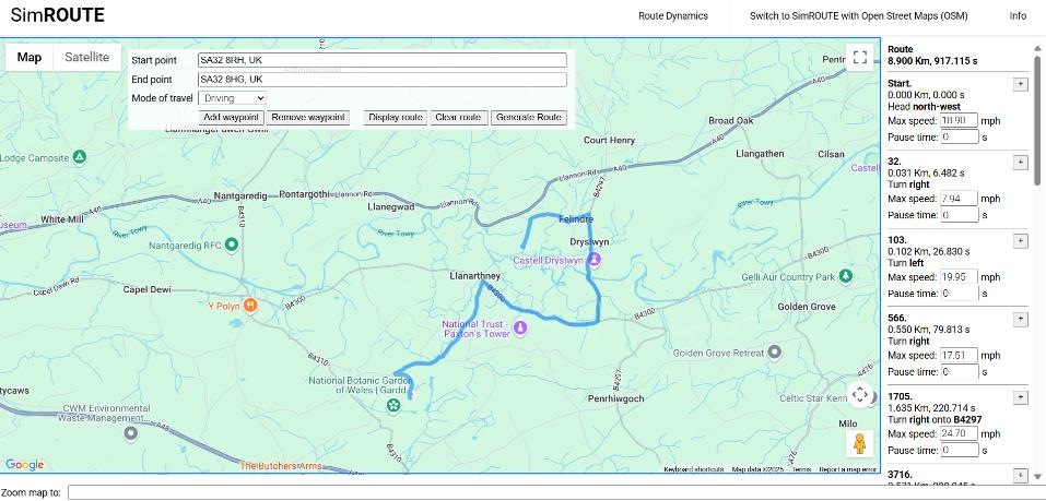 圖2:SimROUTE? Google Maps?用戶(hù)運(yùn)動(dòng)軌跡生成工具