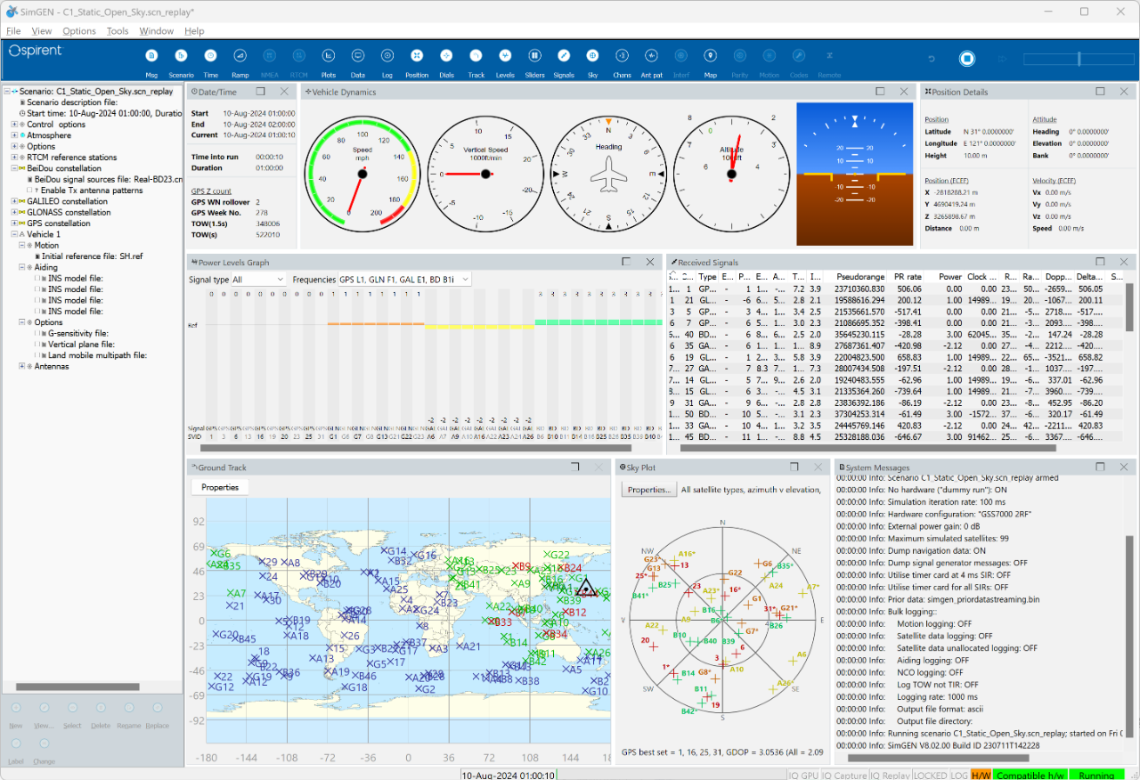 系統(tǒng)性能評(píng)估:C/N0與接收機(jī)的帶寬無(wú)關(guān),可以用于不同接收機(jī)之間對(duì)比。C/N0表示了被跟蹤的信號(hào)強(qiáng)度以及接收機(jī)前端的噪聲密度。提供的信號(hào)質(zhì)量指示還獨(dú)立于不同接收機(jī)使用的采集和跟蹤算法。工程師可以利用思博倫Spirent衛(wèi)星導(dǎo)航模擬器GSS7000,模擬包括導(dǎo)航星座和用戶載體,衛(wèi)星功率在內(nèi)的導(dǎo)航系統(tǒng)要素以及各種導(dǎo)航誤差源,評(píng)估和優(yōu)化 GNSS 接收機(jī)在各種條件下的性能。這使得研發(fā)過(guò)程實(shí)時(shí)進(jìn)行硬件或軟件調(diào)整變得高效便捷,從而縮短了研發(fā)周期,增強(qiáng)了系統(tǒng)的可靠性。